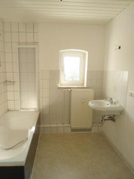 Alle Zimmer sind vom Flur aus begehbar und mit einem Laminatboden versehen. Das Tageslichtbad mit Wanne ist vollständig gefliest, ein Waschmaschinenanschluss ist im Bad vorhanden. Das WC befindet sich separat. Die Küche ist sehr geräumig und lässt viel Freiraum sich individuell, mit z.B. einer Sitzecke einzurichten. In der Küche gibt es außerdem einen kleinen Vorratsraum. Kellerraum, Wäscheboden und Wäscheplatz sind vorhanden. Es besteht die Option, sich in einzelnen Zimmern selbst einen neuen Belag zu verlegen, wir erlassen Ihnen dafür ein bis zwei Kaltmieten.