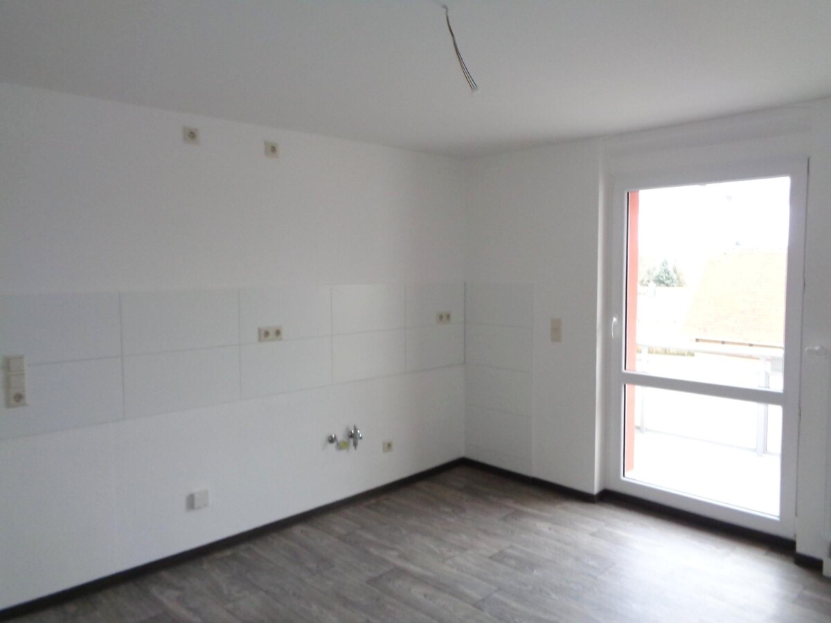 Geräumige und helle 2-Raumwohnung mit großem Balkon an der Küche, Blick zum Innenhof. Bad mit Dusche, Waschtisch, WC und Fenster. Waschmaschinenanschluss im Bad vorhanden. Alle anderen Räume sind mit einem modernen PVC-Belag in Laminatoptik ausgestattet. Boden- und Kellerräume sind vorhanden. Ein Stellplatz gehört zur Wohnung und ist im Mietpreis inbegriffen.