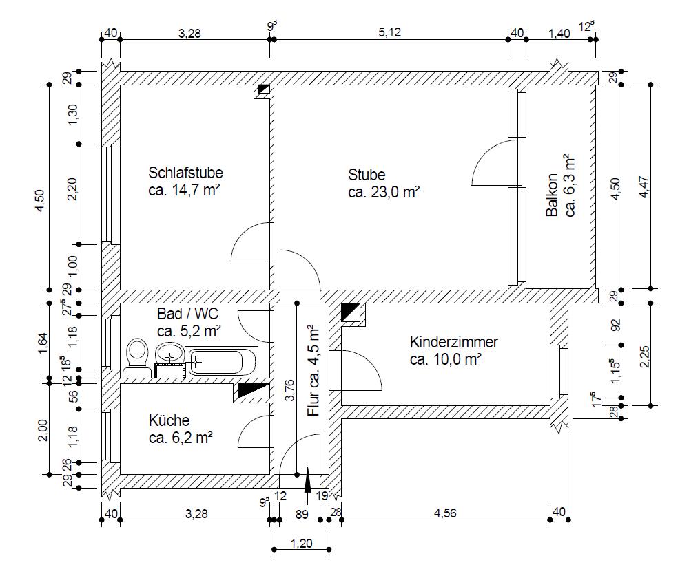 Die auf den neusten energetischen Stand sanierten 3-Zimmerwohnungen befinden sich in einem Mehrfamilienhaus unweit des Stadtzentrums. Zum Objekt gehören eine begrünte Außenanlage. Ein Kinderspielplatz befindet sich in unmittelbarer Nähe. Die Wohnung ist hell und großzügig geschnitten. Alle Räume sind vom Flur aus begehbar und lassen sich geschmackvoll einrichten. Das schöne Tageslichtbad ist mit einer Badewanne und einem Fliesenbelag ausgestattet. Die Küche ist klein, aber funktionell einrichtbar und im geräumigen und sonnigen Wohnzimmer sowie in den anderen Wohnräumen ist heller PVC-Belag verlegt. Ein großzügiger Balkon sorgt für sonnige Stunden.